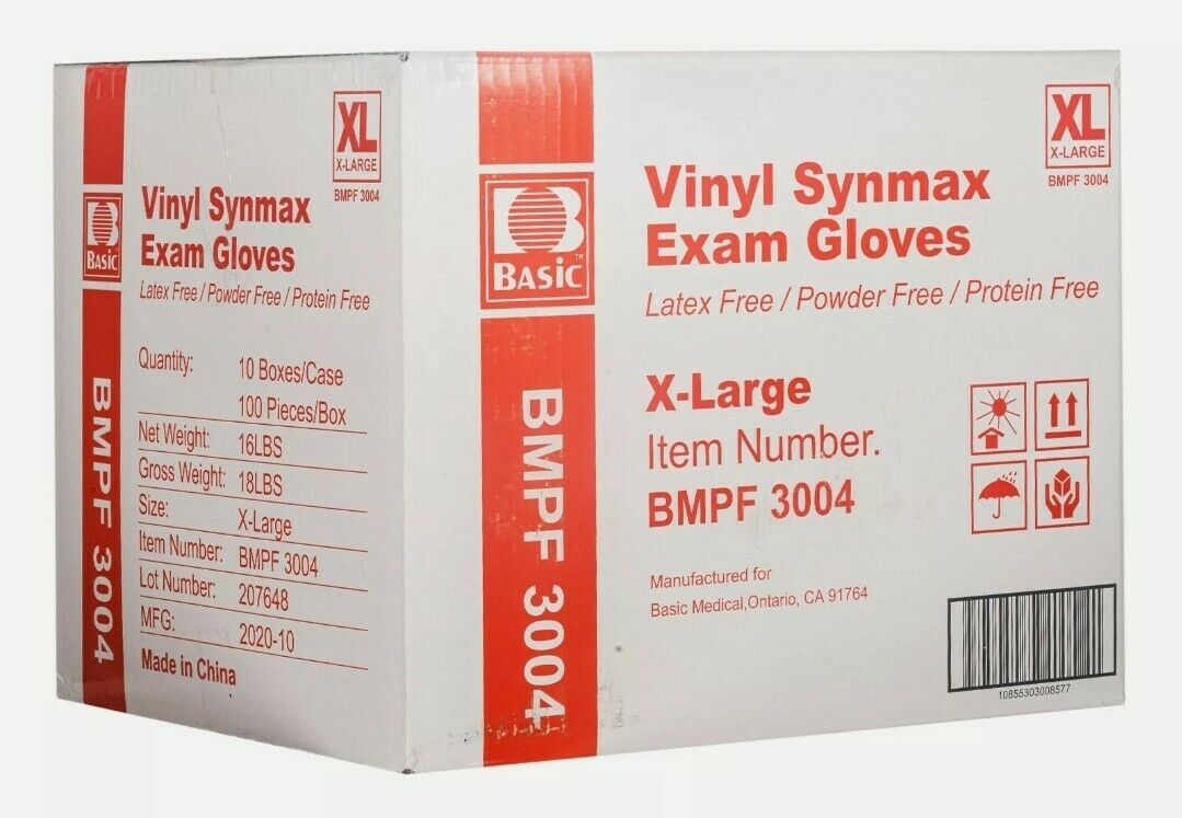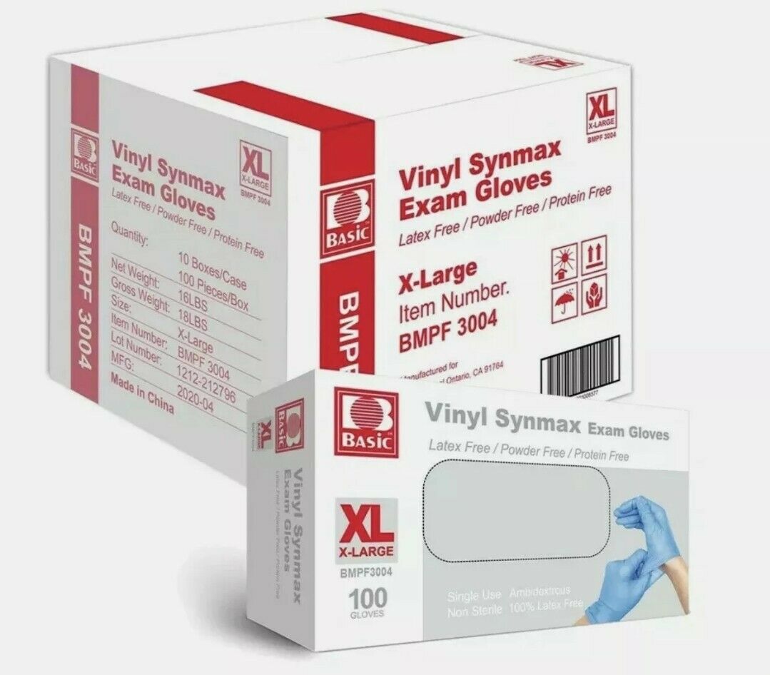 1000Pcs Disposable Synmax Vinyl Exam Gloves Latex-Free & Powder-Free -ExtraLarge