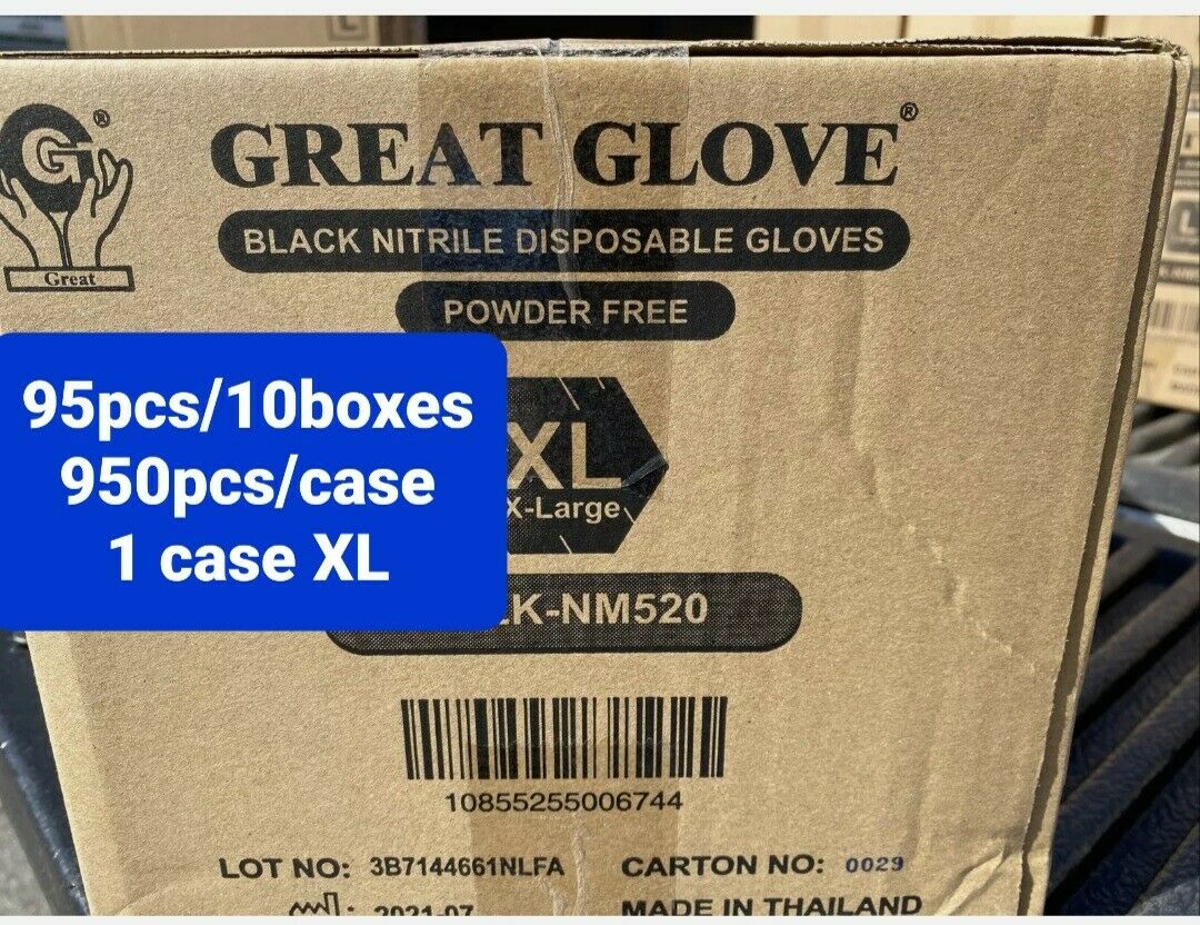 GD care Great glove Nitrile Gloves Powder Free Black, 950 pack (Size XL ) Condition is "New". A case of 1000 PCs.